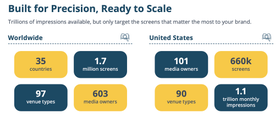 For DOOH, we target based on screen-level indexing, meaning we identify screens with a high density of mobile devices that match your targeting criteria.