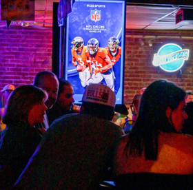 DOOH ads in nightlife and bars can be used to promote other social activities and events. In this example, CBS promotes streaming local NFL games in a sports bar.