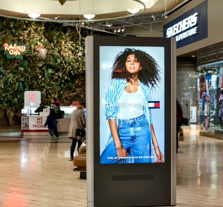Outdoor screens have to compete with direct sunlight, while indoor screens compete with bright retail lighting.