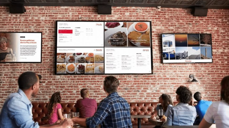 While restaurants often have digital menu displays, some are now breaking into DOOH advertising with partial or full screens. Restaurants are a good place for ads with more information because viewers will have longer dwell time.