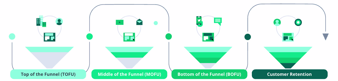 • Top of Funnel: Build brand awareness with display ads and short-form content (think infographics, blog posts).